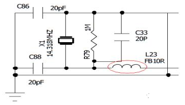 2)原電路中晶振輸出磁珠 R23  (FB10R)去掉;