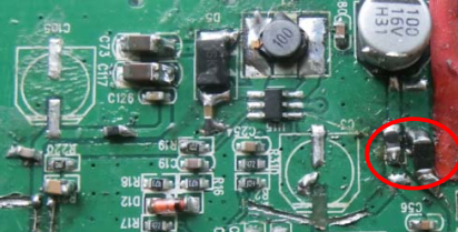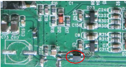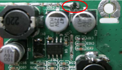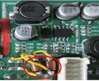 (9)12V 轉 5V 電路輸入地線(電容 C100 附近,具體位置見樣機)增加磁珠(大電流, 阻抗 120Ω, 同 L72);