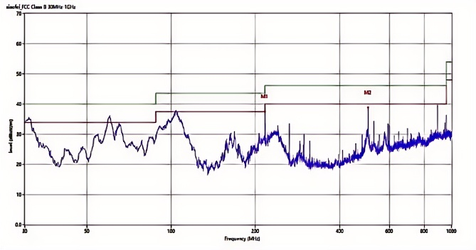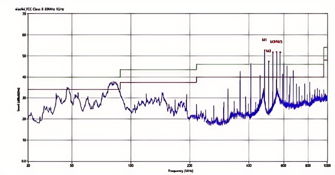 針對攝像頭的時鐘輻射問題,一般優先考慮信號傳輸路徑的輻射問題,常見的整改手段是,優化信號線的屏蔽性能,再考慮對信號做濾波處理。在本案例中,還出現了WIFI天線因為緊挨著主控芯片導致輻射過高的問題,這提醒我們,在實際設計中,線束都應該盡可能遠離高速信號處理模塊以及強輻射源,以免出現噪聲耦合導致輻射過不了的情況。